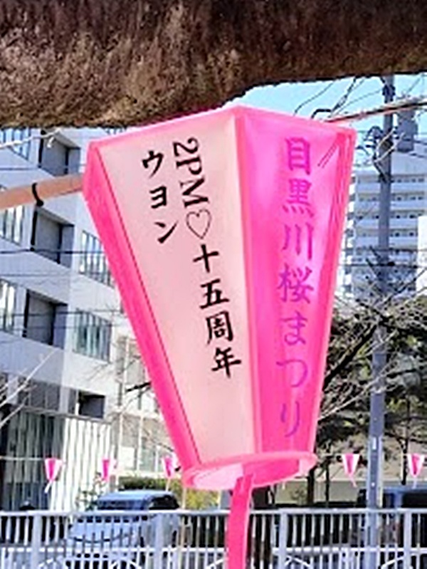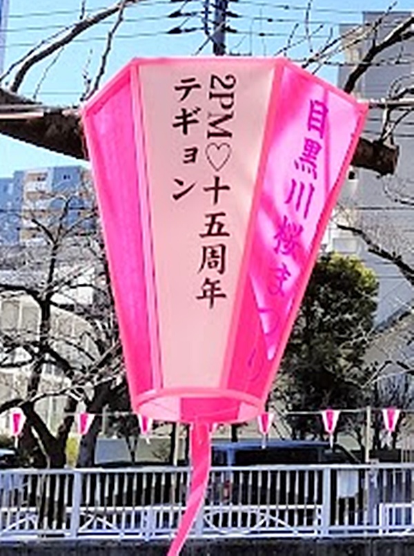 目黒川の桜祭り 東方神起20周年お祝いぼんぼり [pic by writer]